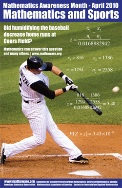 April is Math Awareness Month. This year, the theme is "Mathematics and Sport".